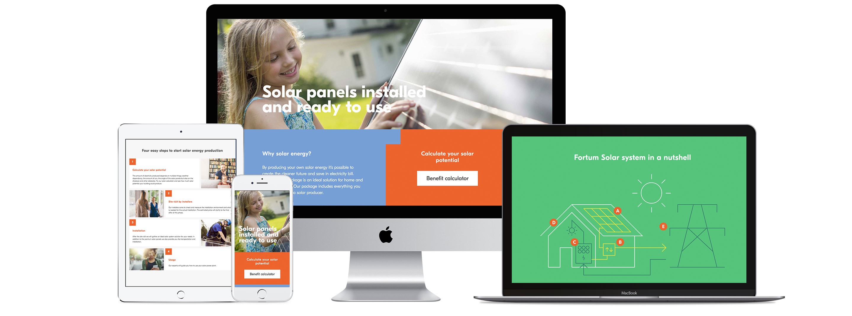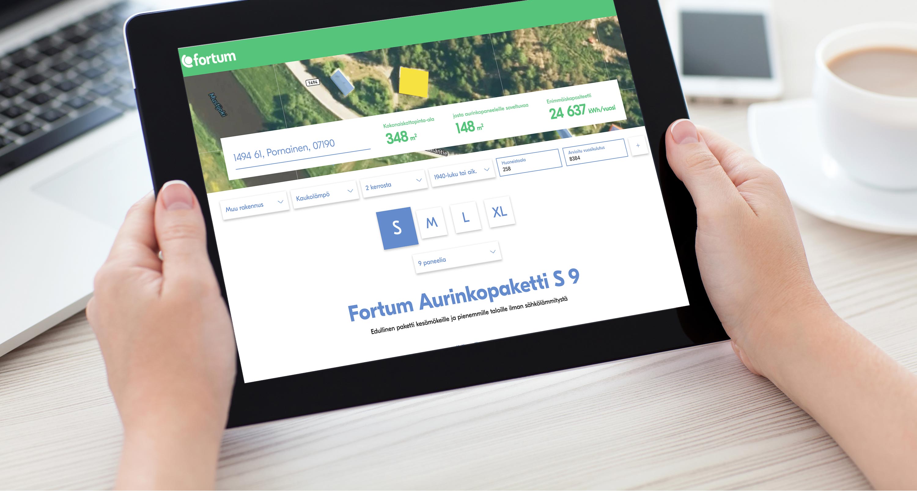 The biggest barrier to solar adoption in Finland wasn't cost — it was disbelief. Many potential customers assumed there simply wasn't enough sun in the Nordics to make it worthwhile. Before anyone would consider purchasing, that doubt had to be addressed head-on. We created Fortum Aurinkolaskuri, a solar benefit calculator that gives any homeowner a personalised estimate in seconds. Enter your address, and the tool uses building properties and measured solar radiation data to calculate your roof's energy potential, recommended panel configuration, expected annual production, electricity bill savings, and payback time. No technical knowledge required. The user experience was kept deliberately minimal. One input, one click, one clear result. We stripped out solar jargon — inverters, kilowatt-hours, peak output — and replaced them with outcomes people actually care about: money saved, energy produced, years to break even. The calculator became the front door to the entire solar offering.